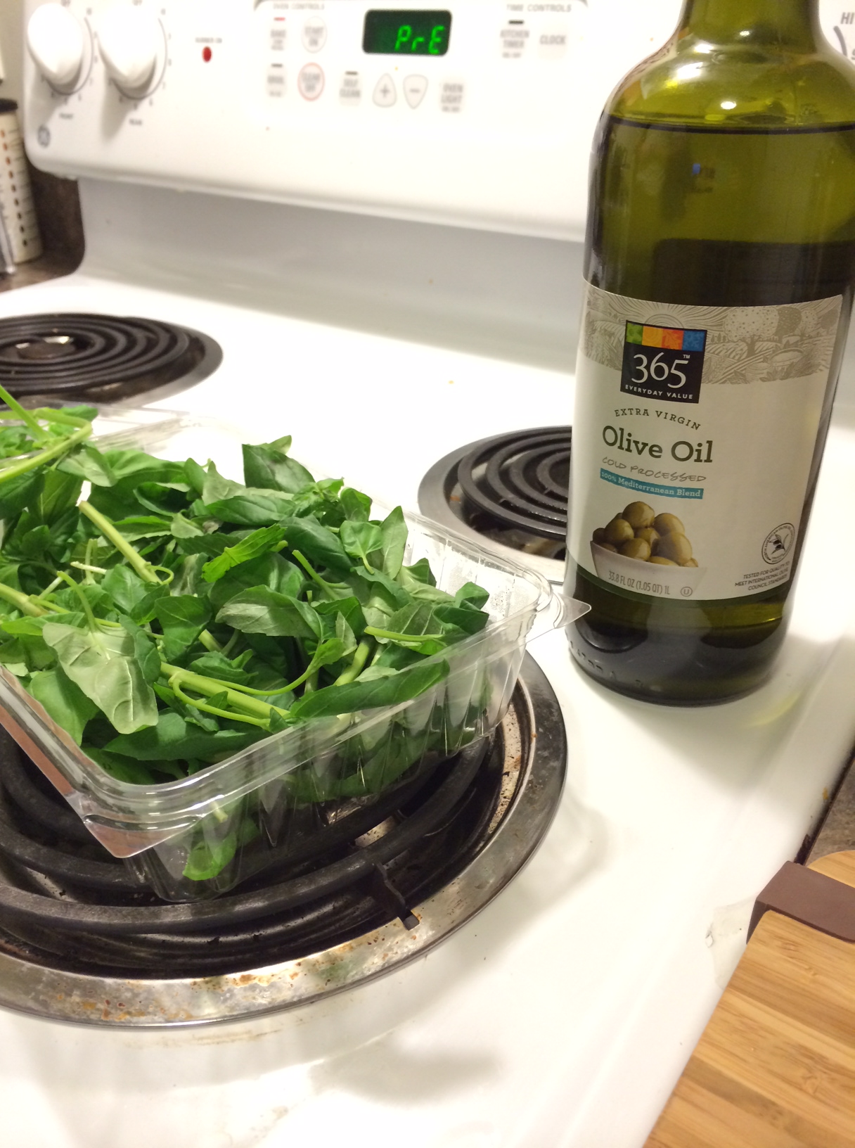Throw all pesto ingredients in a food processor (I’ve also used a blender before) for about a minute. That was easy!