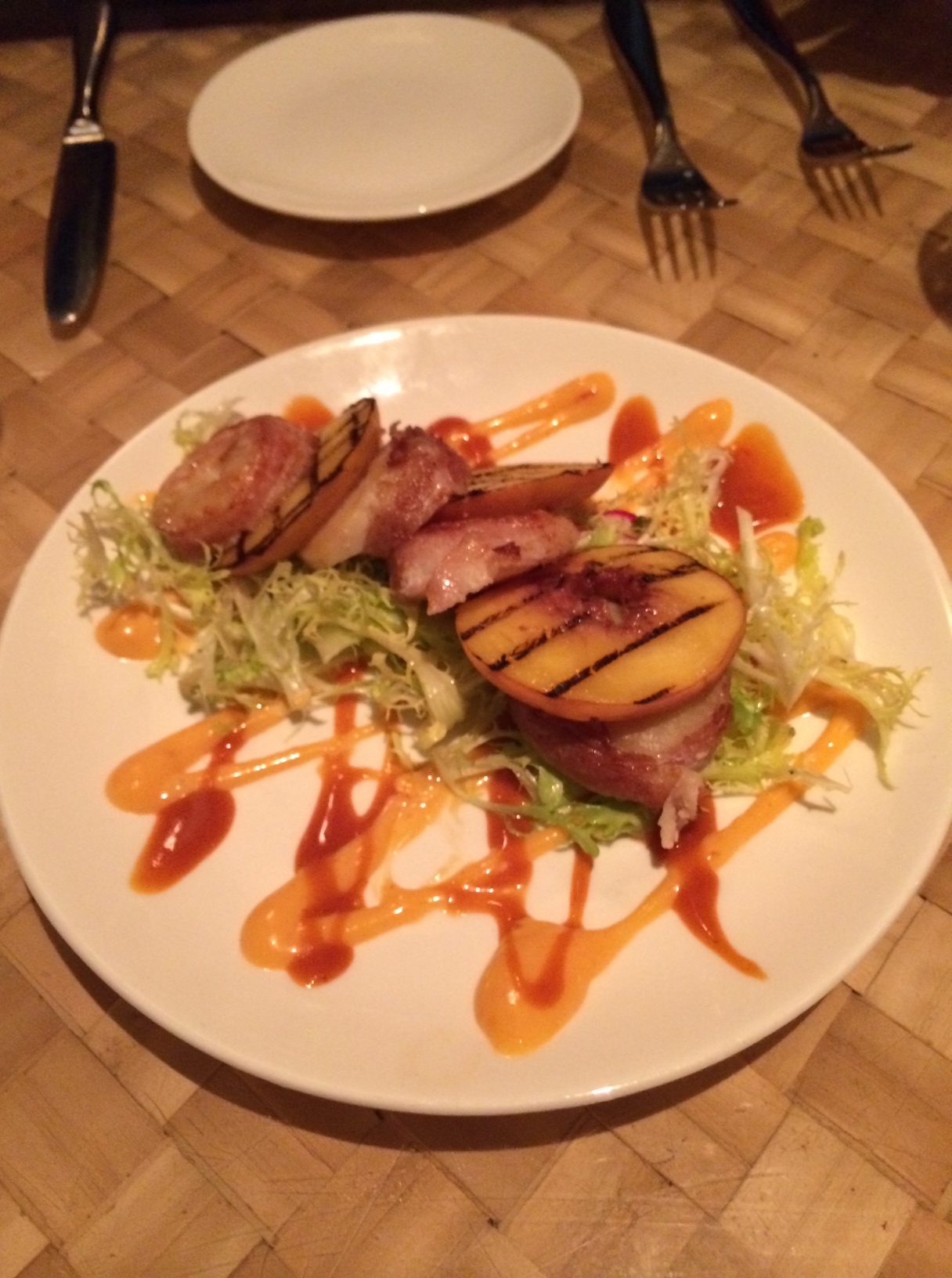 We ate dinner right in front of the light house at a restaurant called Topside. We had a great bottle of red wine and bacon wrapped scallops to start. They were delicious!