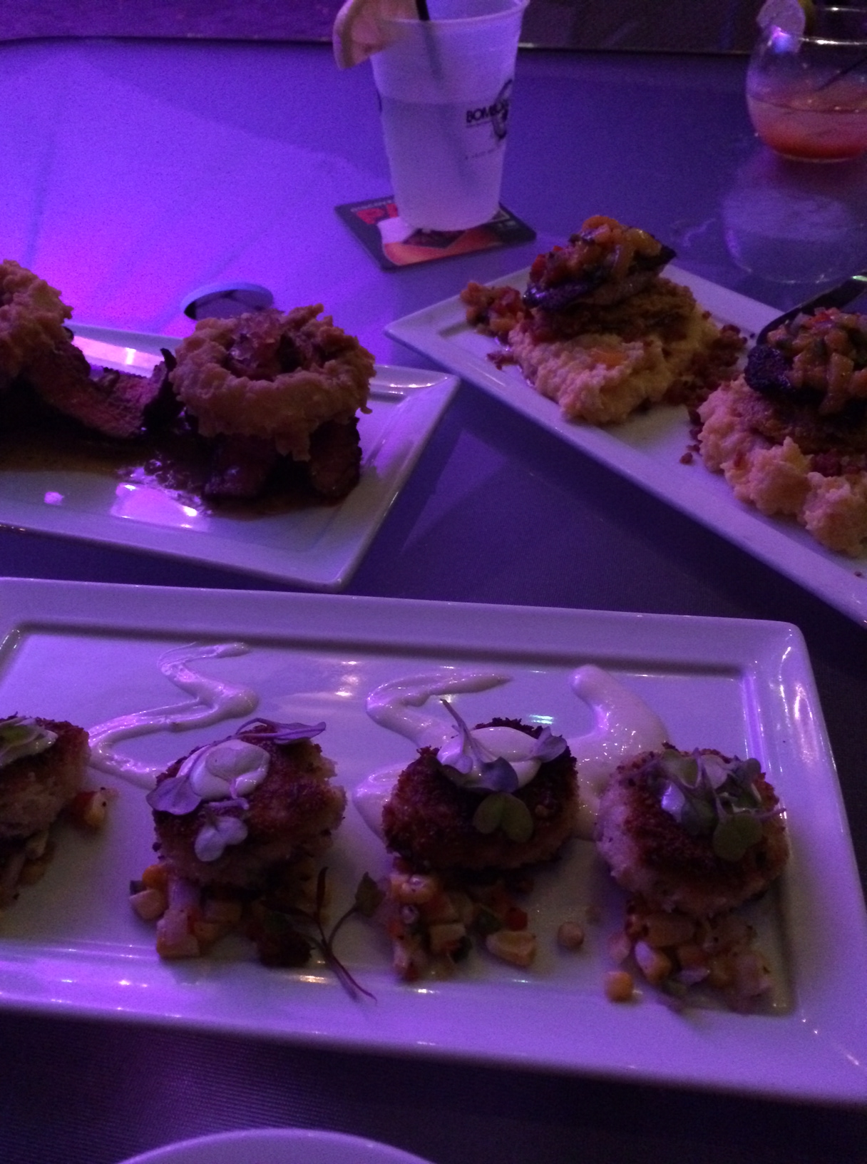 For dinner we shared three small plates that were not really all that small. We got flank steak over potato pancakes topped with crispy onion rings, oh my. The mahi mahi was over cheddar and bacon grits. I still can’t get into the whole grits thing down here. And then we had these awesome little crab cakes. A lot of food, and a lot of non paleo eating. But hey it’s vacation 🙂
