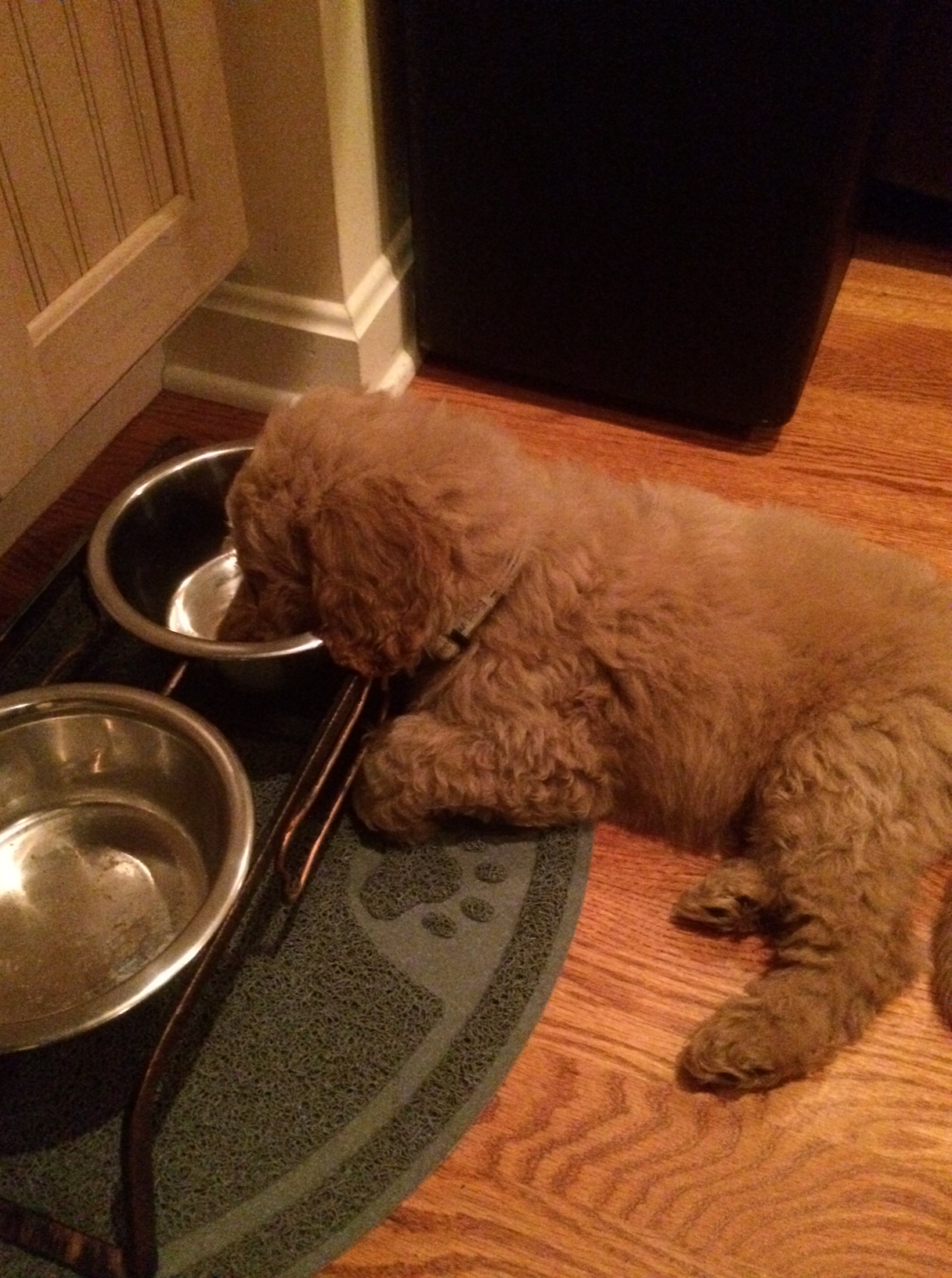 And this little guys ate three meals and lots of water!  He is a thirsty little puppy.  So much he fell asleep in his water bowl last night.