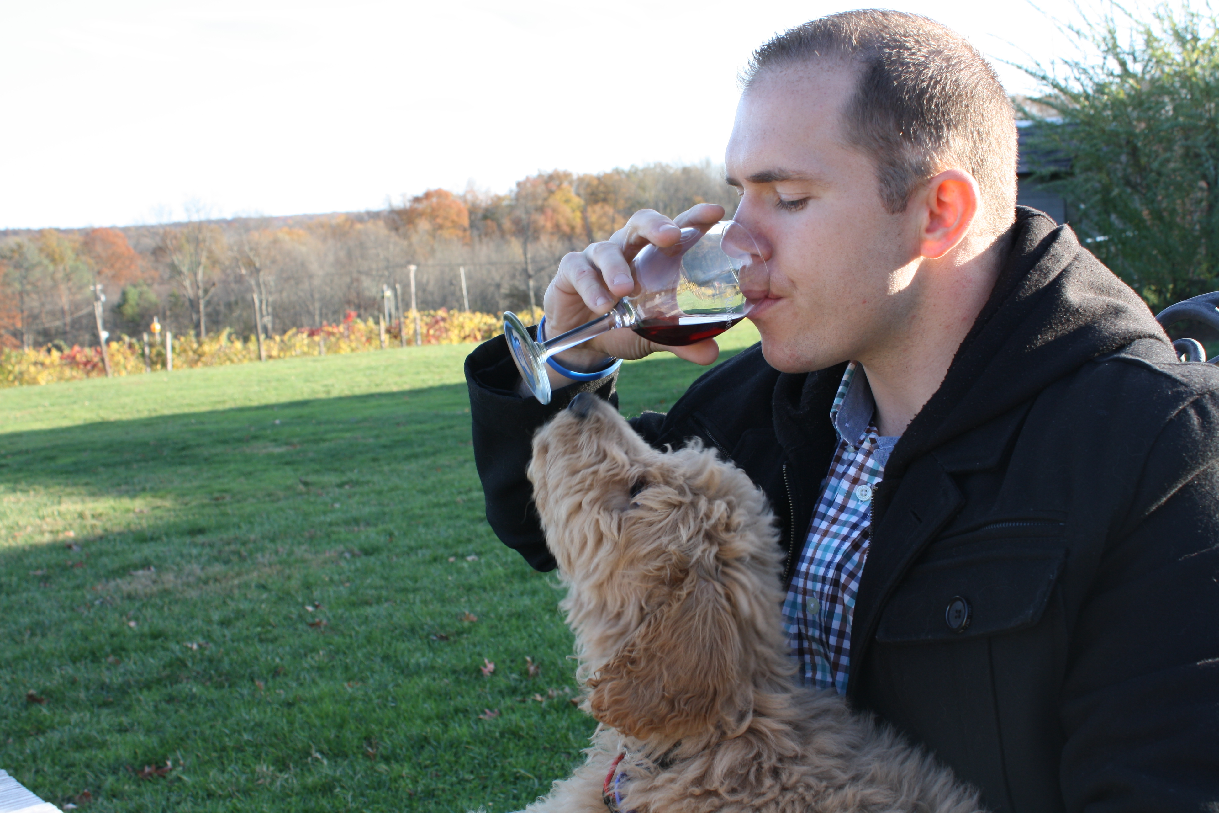 They are dog friendly, both outside and inside!  Rudy is a wine connoisseur in training.