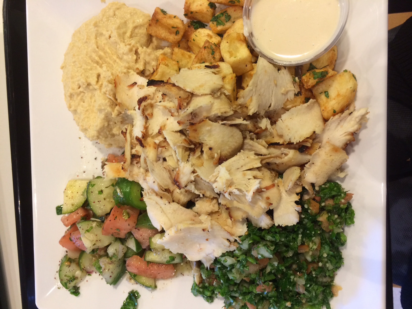After nails and searching Yelp (oh how I miss living in a city) we decided on lunch. We found a newer Mediterranean Restaurant on the corner of Mass Ave and Boylston called Zest. I had chicken schwarma, tabouli, and hummus. It was really delicious and super cheap for the size!