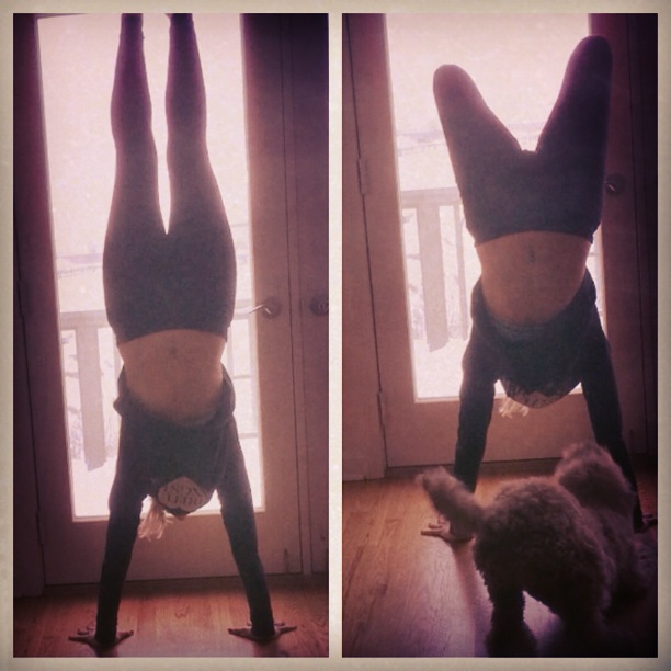Then I did some handstand play. Which is more difficult now that I have a fur child.